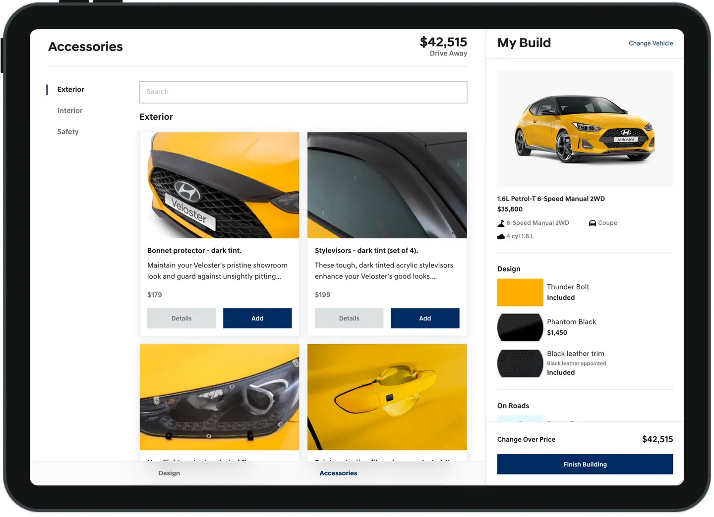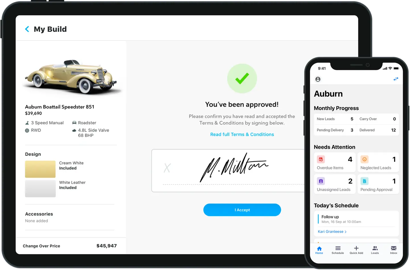 Our interactive vehicle builder app takes your customers’ car-buying experience to a new level, from configurator to closed deal.
