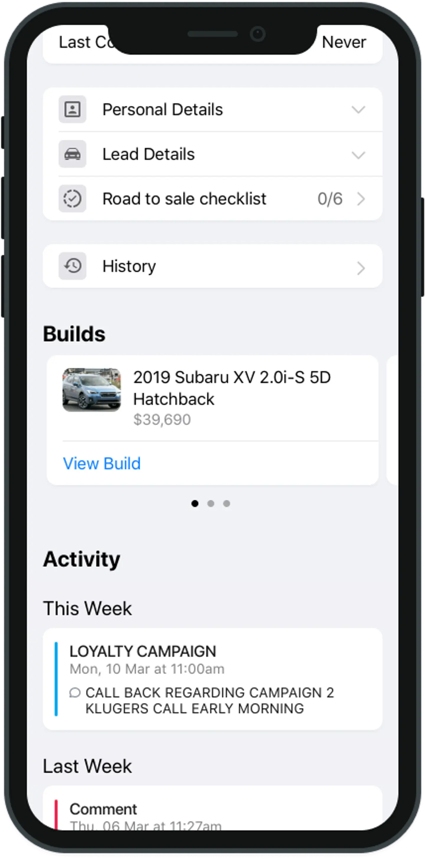 Gain insights into customer preferences as well as where they’re up to in the research and purchase phase, with builds linked directly to customer profiles.